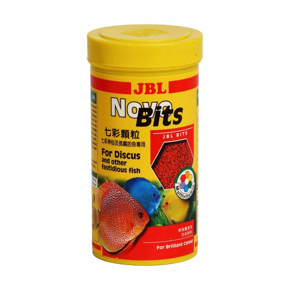 JBL Novo Bits is a slowly sinking staple food, rich in nutrients and easily digestible, specifically developed to meet the nutritional requirements of Discus and other fastidious aquarium fish, like smaller cichlids, altum angels and others. The special sinking behavior and shape of Novo Bits matches the natural feeding habits of Discus. A special balanced and carefully developed combination of ingredients containing proteins, fats, carbohydrates, minerals and fibers promotes excellent growth. Valuable carotinoids as well as vitamins including stabilizing Vitamin C ensure excellent coloration and the health of your fish